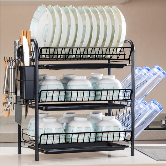 This Space-Saving Dish Drainer with Tray is designed to optimize kitchen organization by efficiently drying dishes while conserving countertop space. Its compact yet sturdy structure accommodates various dish sizes, and the integrated tray collects excess water to keep surfaces dry and clean. Ideal for maintaining a tidy kitchen, it offers a practical and durable solution for everyday dish drying needs.