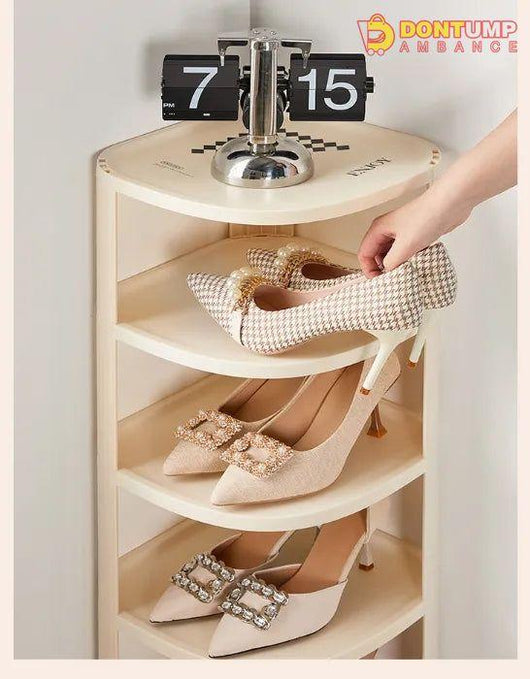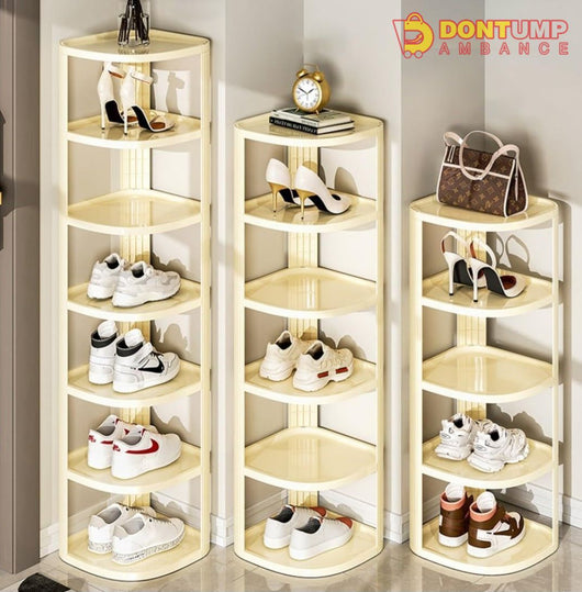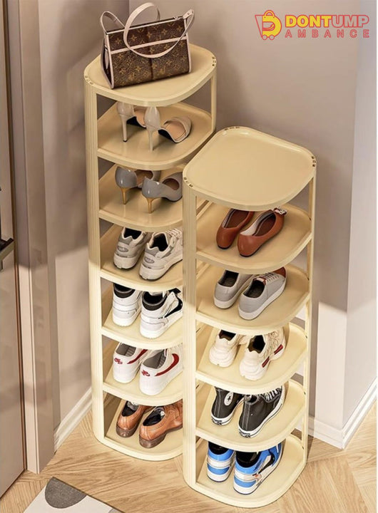 Maximize storage space with our SPACE SAVING SHOE RACK. Its innovative design allows you to store more shoes in less space, making it perfect for tight or cluttered closets. Keep your shoes organized and easily accessible with this practical solution.