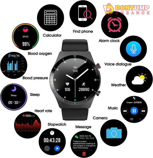 Smart Watch with Call, Full Touch Screen Sports Smartwatch with Blood Oxygen, Heart Rate, Sleep Monitor, GPS, Fitness Voice Control, Bluetooth Call, Music,