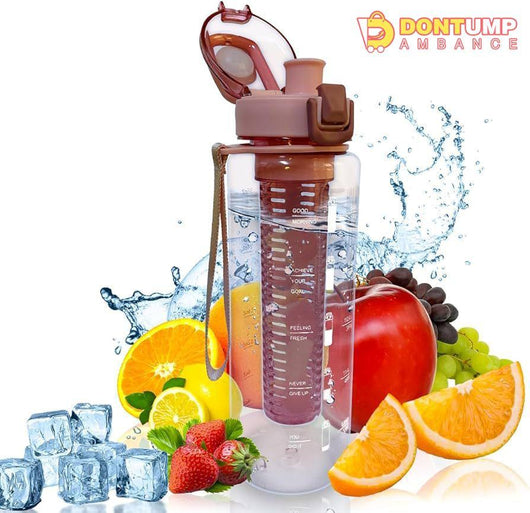 Stay hydrated and motivated with our sports water bottle. Featuring a fruit infuser and motivational time marker, you can easily add flavor to your water while tracking your water intake. Keep yourself on track to reaching your hydration goals with this innovative sports water bottle.