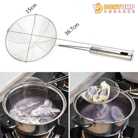 Designed with the mesh strainer wire bowl tip, you can use this ladle to fry potato chips, cakes, chicken legs and so on.