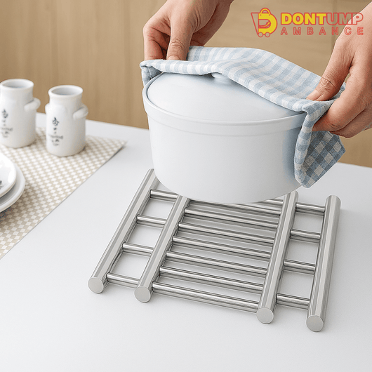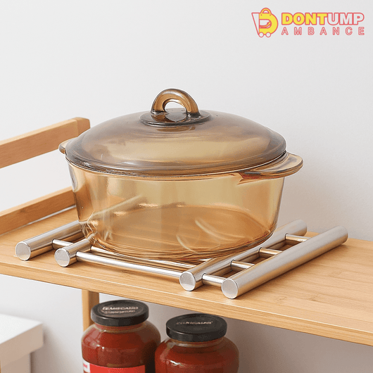 This stainless steel heat-resistant trivet provides reliable support for hot cookware, protecting your countertops and tables from heat damage. Crafted from durable stainless steel, it offers excellent resistance to high temperatures and ensures stability for pots and pans. Its sleek design combines functionality with a professional look, making it an essential tool for any kitchen.