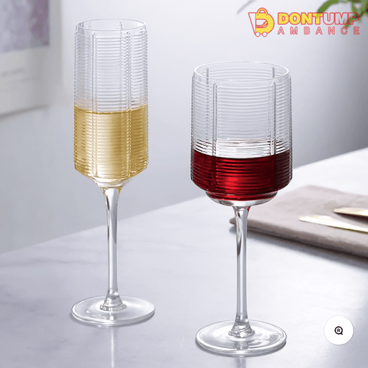 Elevate your dining experience with this Textured Ribbed Crystal Wine & Champagne Glass Set. Crafted with tall, elegant stems and a distinctive ribbed texture, these glasses enhance the visual appeal of your favorite wines and champagnes. Designed for both everyday use and special events, they offer a refined touch that complements any table setting while ensuring comfortable handling and optimal aeration for your beverages. Perfect for connoisseurs seeking sophistication and functionality in their stemware collection.