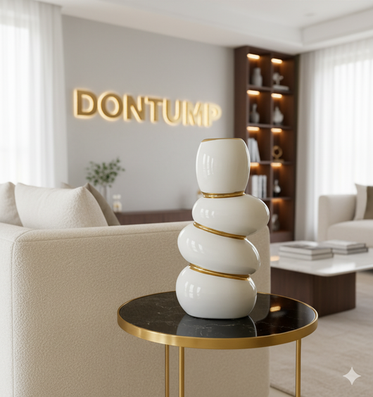 The DONTUMP Golden and White Vase combines elegant design with timeless craftsmanship. Its striking gold accents paired with a pristine white base create a sophisticated centerpiece for any space. Ideal for showcasing fresh flowers or enhancing your décor, this vase adds a touch of luxury and refinement to your home or office environment. Durable and finely finished, it balances aesthetic appeal with lasting quality.
