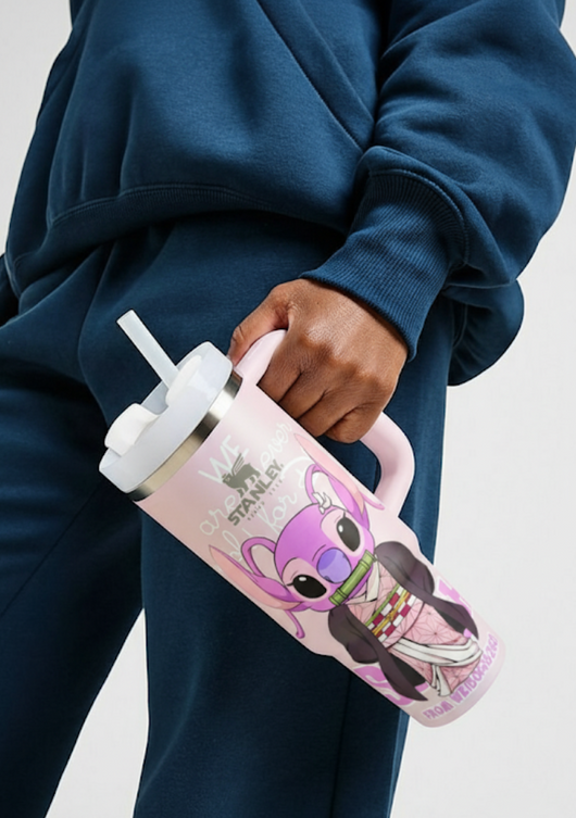 The Stanley x Stitch Special Edition H2.0 Flowstate Quencher Tumbler 40oz in Pink combines durability with style for ultimate hydration. Designed with double-wall vacuum insulation, it keeps your drinks cold for hours and hot beverages steaming. The 40oz capacity ensures you stay refreshed throughout the day, while its ergonomic design offers comfortable handling. This limited-edition tumbler features a leak-resistant lid and easy-to-clean components, making it ideal for active lifestyles and daily use. Perfect for those who demand performance and aesthetics in one premium tumbler.