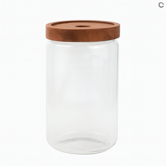 This transparent glass storage jar with a wooden lid offers airtight sealing, preserving the freshness of your kitchen essentials. Its clear design allows quick identification of contents, while the natural wooden lid adds durability and style. Ideal for storing dry goods, spices, or snacks, this container combines functionality with an elegant, practical solution for organized kitchen storage.