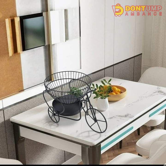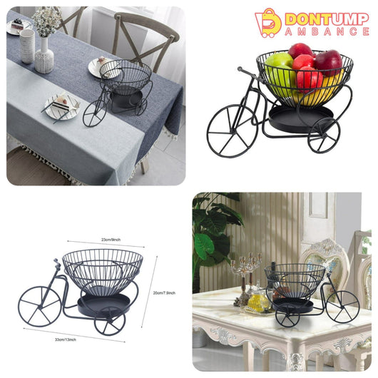 Introducing the TRICYCLE FRUIT BASKET - a unique and practical solution for storing your fruits. Its three-wheeled design allows for easy movement and storage, while the open design ensures proper air circulation to keep your fruits fresh for longer. Upgrade your kitchen with this stylish and functional fruit basket.