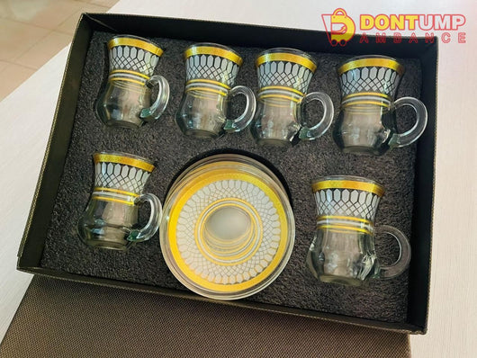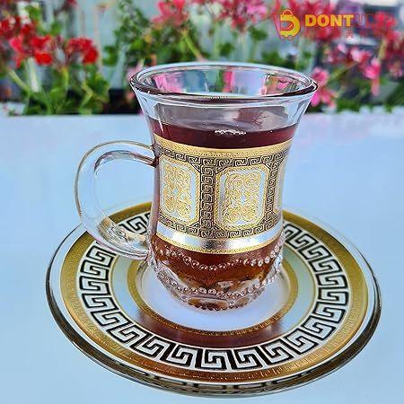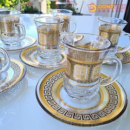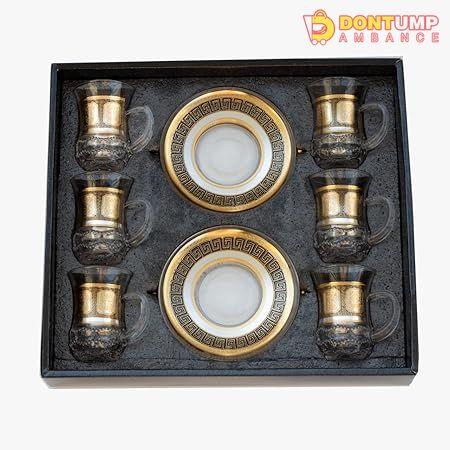 This Turkish tea set includes six cups and six saucers, perfect for serving traditional Turkish tea. Experience the authentic culture and taste with this handcrafted set made from high-quality materials. Impress guests and elevate your tea drinking experience with this elegant and practical set.