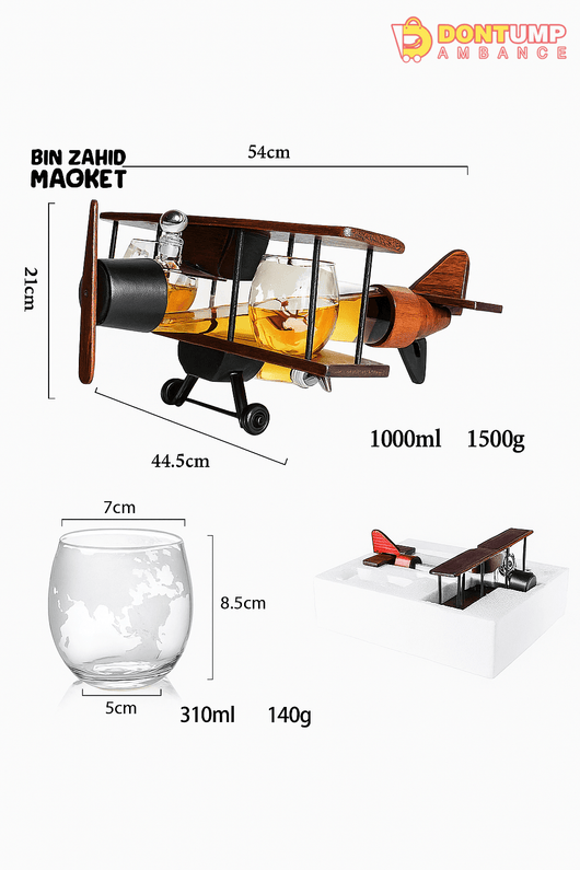 Elevate your bar with this Vintage Airplane Liquor Decanter Set, featuring a 1000ml capacity decanter shaped like a classic airplane and accompanied by a globe-shaped glass. Crafted for both style and function, this set serves as a sophisticated centerpiece that enhances any collection. Its unique design not only stores your favorite spirits but also sparks conversation, making it ideal for enthusiasts seeking a refined and distinctive bar display.
