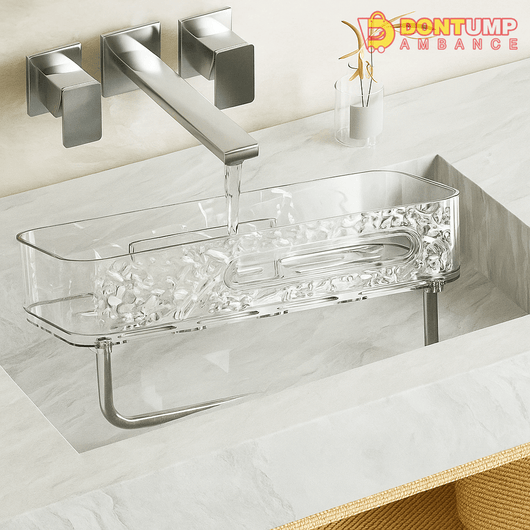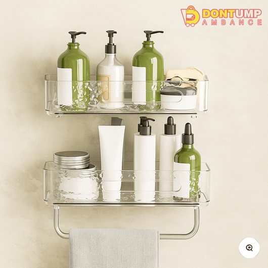 Wall-Mounted Dual-Layer Acrylic Bathroom Shelf – Decorative Storage Rack with Towel Bar
