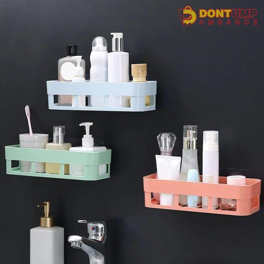 Introducing the Wall-Mounted Plastic Shelf with Drain, a sturdy and hygienic solution for storing bathroom or kitchen essentials. Made from durable plastic, this shelf is designed to be mounted on walls and includes a drain to prevent water build-up. Keep your space clean and organized with this functional product.