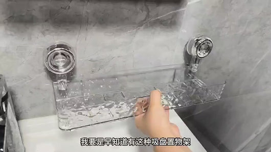 This wall-mounted transparent bathroom shelf offers a practical storage solution for toiletries, utilizing strong suction cups for secure attachment without drilling. Its clear design ensures easy visibility of items, helping maintain an organized and clutter-free bathroom space. Ideal for holding soaps, shampoos, and other essentials, it combines convenience with a sleek, minimalistic look suitable for any bathroom decor.
