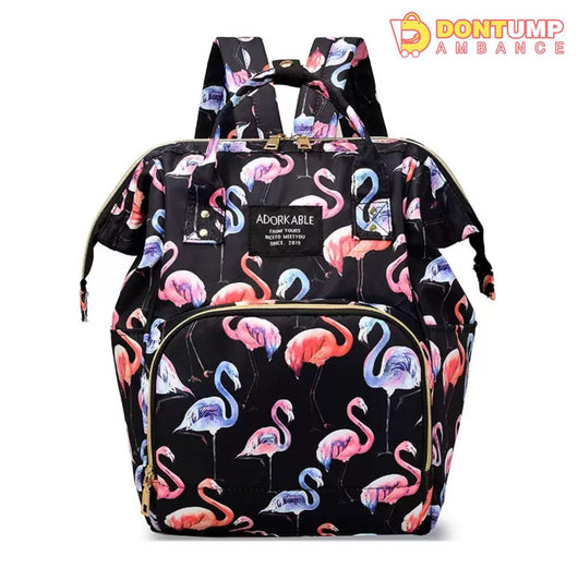 Water Proof Travel Diaper Bag Pack Flamingo Black