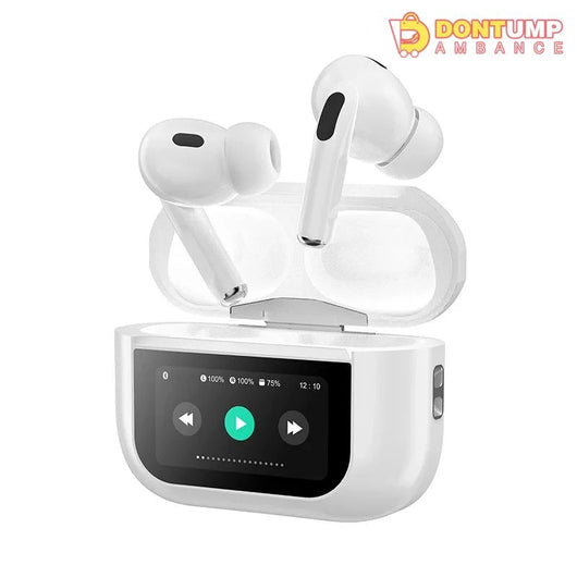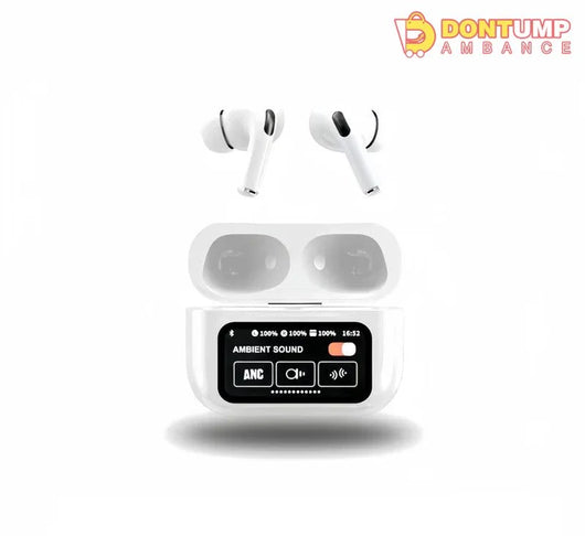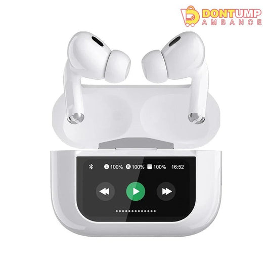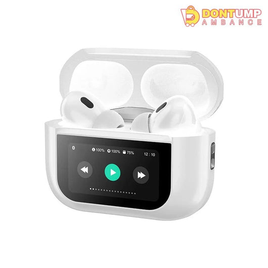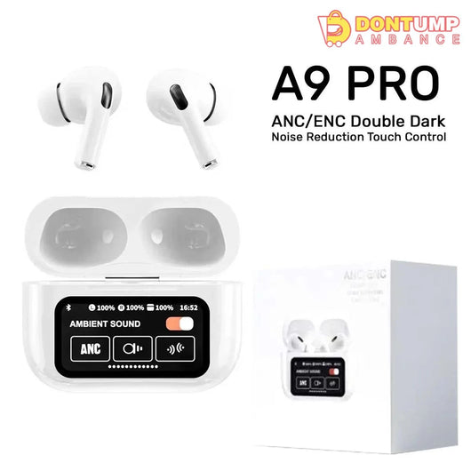 Upgrade your audio experience with the White A9 Pro Airpods. Enjoy crystal clear sound and active noise cancellation (ANC) and environmental noise cancellation (ENC) features, reducing outside distractions and providing a more immersive listening experience. With a convenient touch screen display, these wireless earbuds are the perfect companion for any tech-savvy individual.