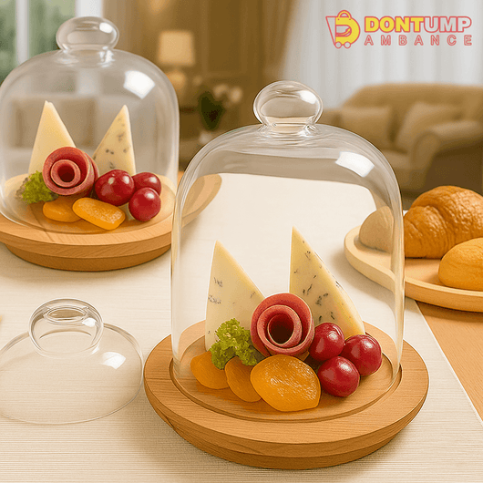 Wooden Cheese Board with Glass Dome Cover – Elegant Charcuterie Serving Set